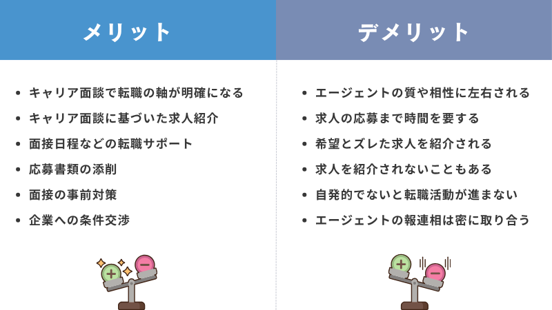 ここでは、私の実体験も踏まえながら、転職エージェントのメリット・デメリットを解説します